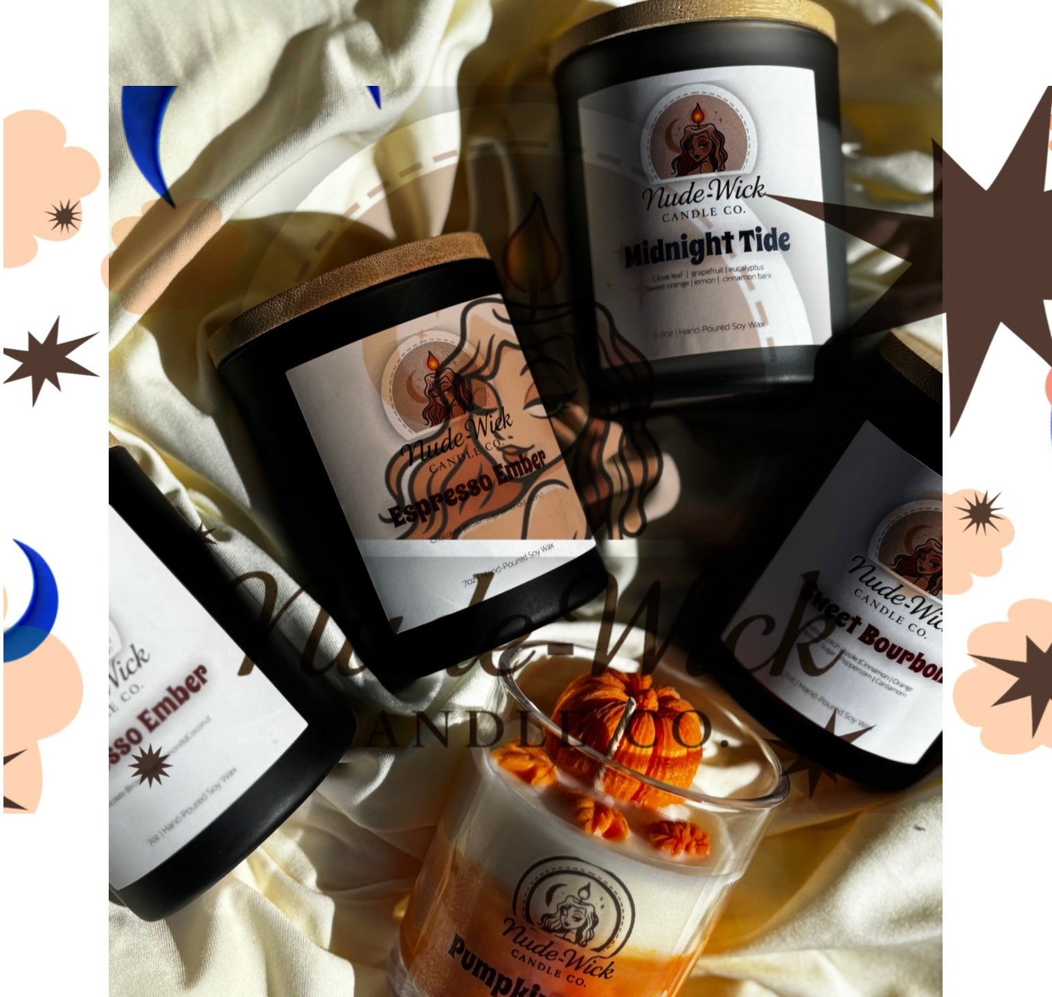 Nude-wick.candleCO, is to transform simple moments into unforgettable experiences. Each candle is crafted with care using premium soy blend wax and captivating fragrances designed to set the mood—whether it’s for relaxation, connection, or indulgence.